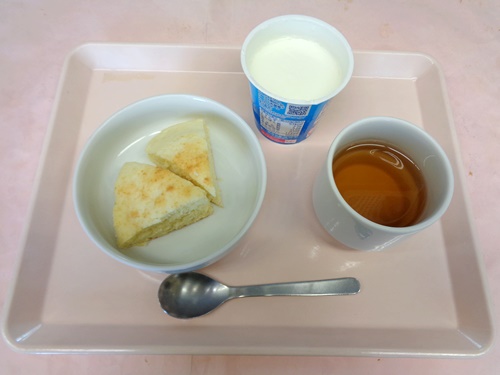 おやつ ホットケーキ・ヨーグルト・お茶