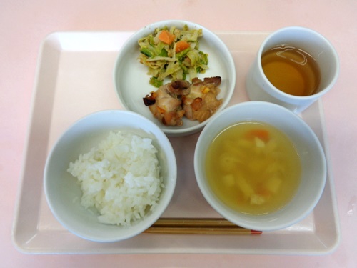 ごはん・鶏肉のマーマレード焼き・小松菜のごま和え・豆腐のみそ汁