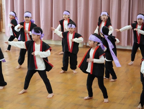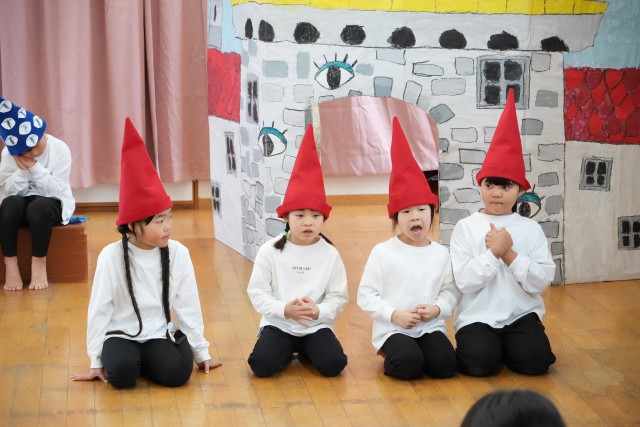 2/28(土)に「らいおんのつどい」で 年長児が、劇『大どろぼうホッツェンプロッツ』歌「あしたは はれる」、民舞「よさこいソーラン」を披露しました。