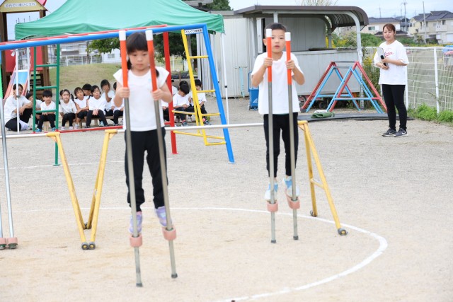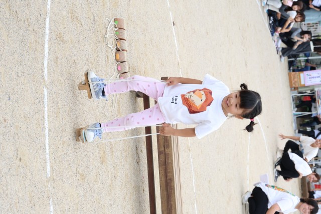 普段から楽しんでいる 雲梯や鉄棒、ぽっくり、天狗下駄、三つ馬、竹馬、とび箱等を おうちの方に「見てもらえる!」と張り切ってくれました。一人ひとりが輝いている姿を見ていただくことができました。みんな みんな「金メダル」でしたよ!