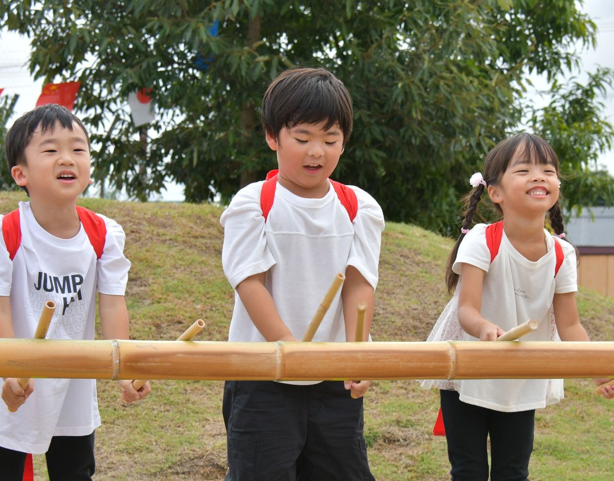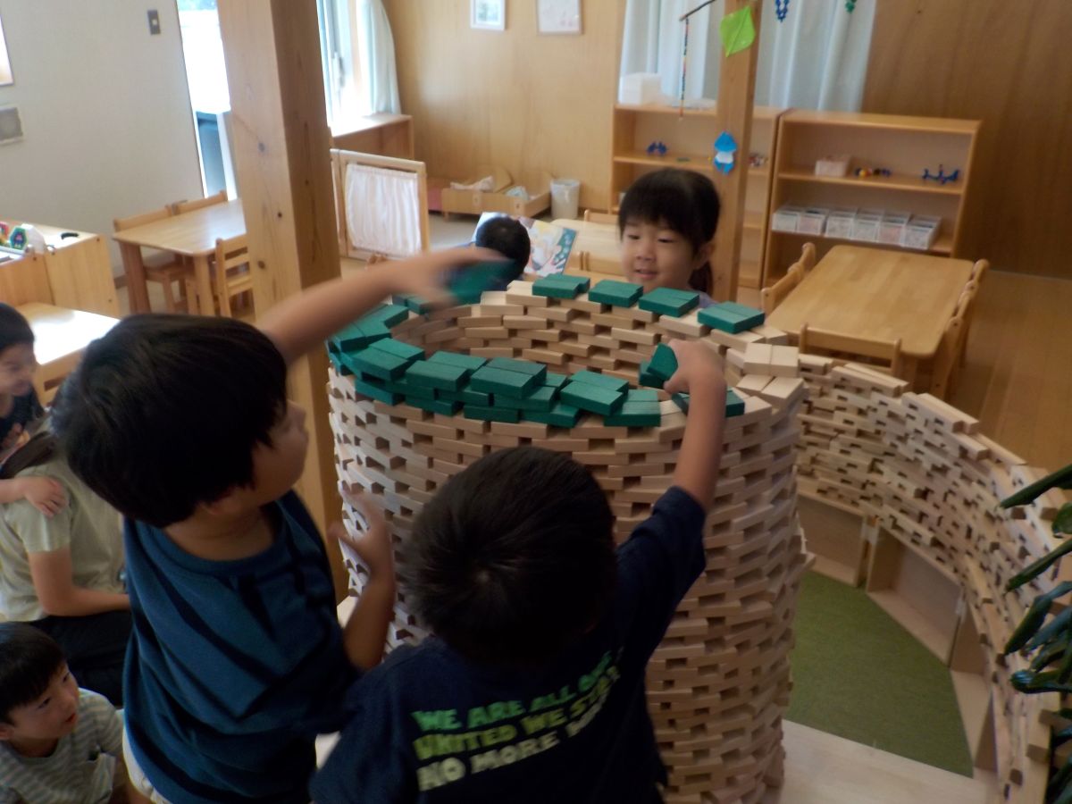 気候がよくなってきて、おさんぽが楽しい、すみれのおうち(3.4.5歳児)。近くの神社へお散歩に行ったとき、不思議な木の根っこをみつけました。さっそく・・・「ちんぷくまんぷく あっぺらこのきんぴらこ じょんがらぴこたこ めっきらもっきらどぉんどん」と子どもたちが歌いだすと、なんだか不思議なことがおこりそうな予感。神社でお宝を見つけ、3人組からお手紙が届きました。木の丸太とおたから交換が始まったり、お散歩を楽しんでいます。お部屋でも積み木で神社の大木を作ったり、めっきらもっきらのお話の世界が広がっています。